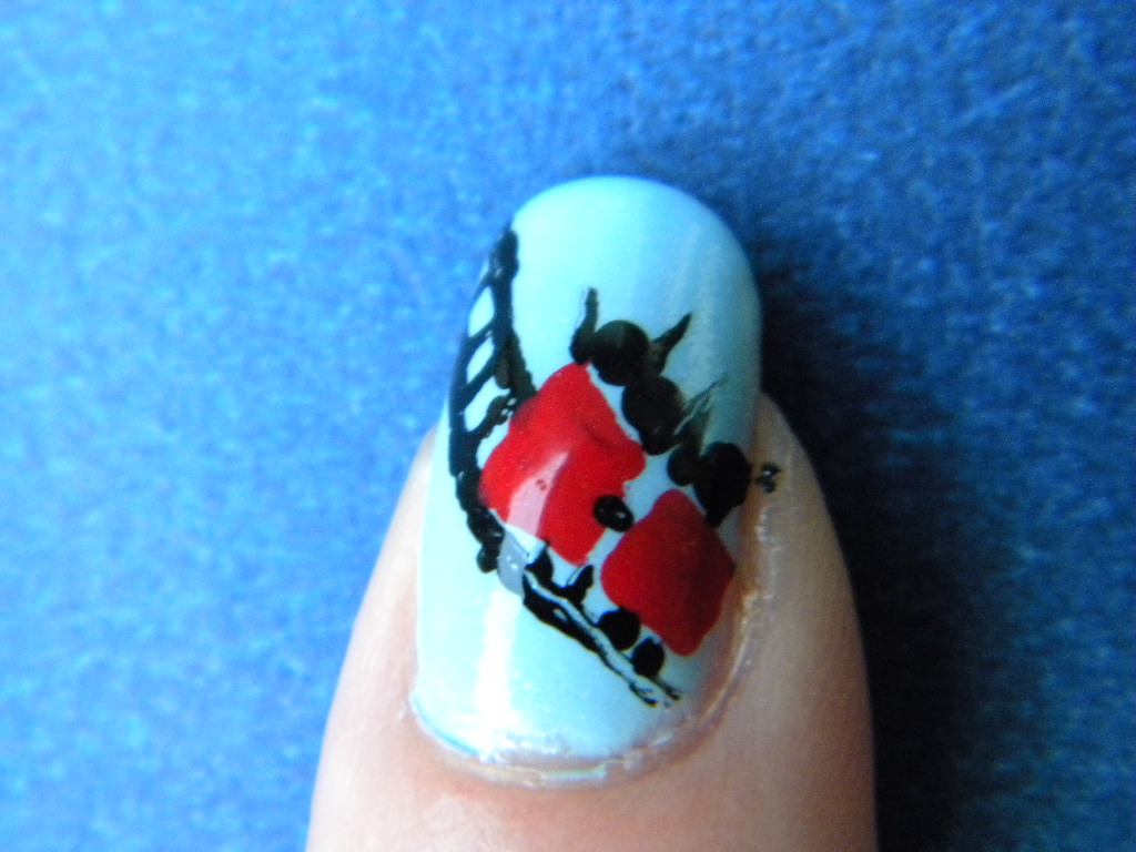 I couldn’t find my Sally Hansen black nail pen, so the black is kind of sloppy. I’m not as good at straight lines with a dotting tool.